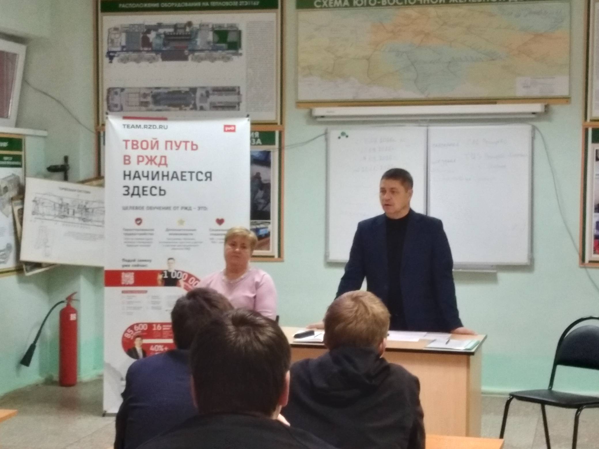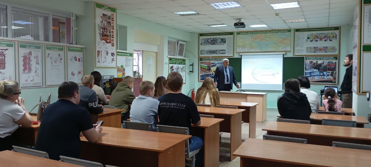 12 декабря 2025 года в Ртищевском техникуме железнодорожного транспорта состоялась встреча обучающихся с руководством Юго-Восточной дирекции управления движением. Перед студентами выступили заместитель начальника дирекции Тарасенко Олег Станиславович и заместитель начальника Мичуринского центра организации работы железнодорожных станций Коншина Любовь Витальевна.