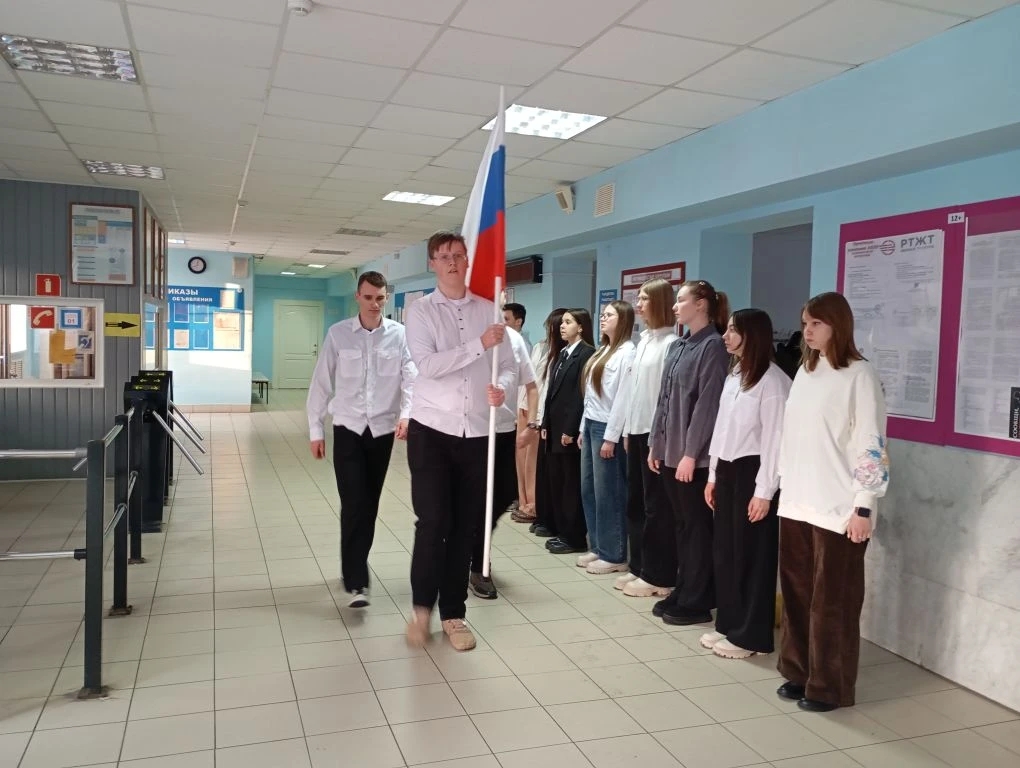 В техникуме прошло торжественное мероприятие — вынос Государственного флага Российской Федерации. Это событие стало важной частью патриотического воспитания студентов и символом уважения к истории и традициям нашей страны.