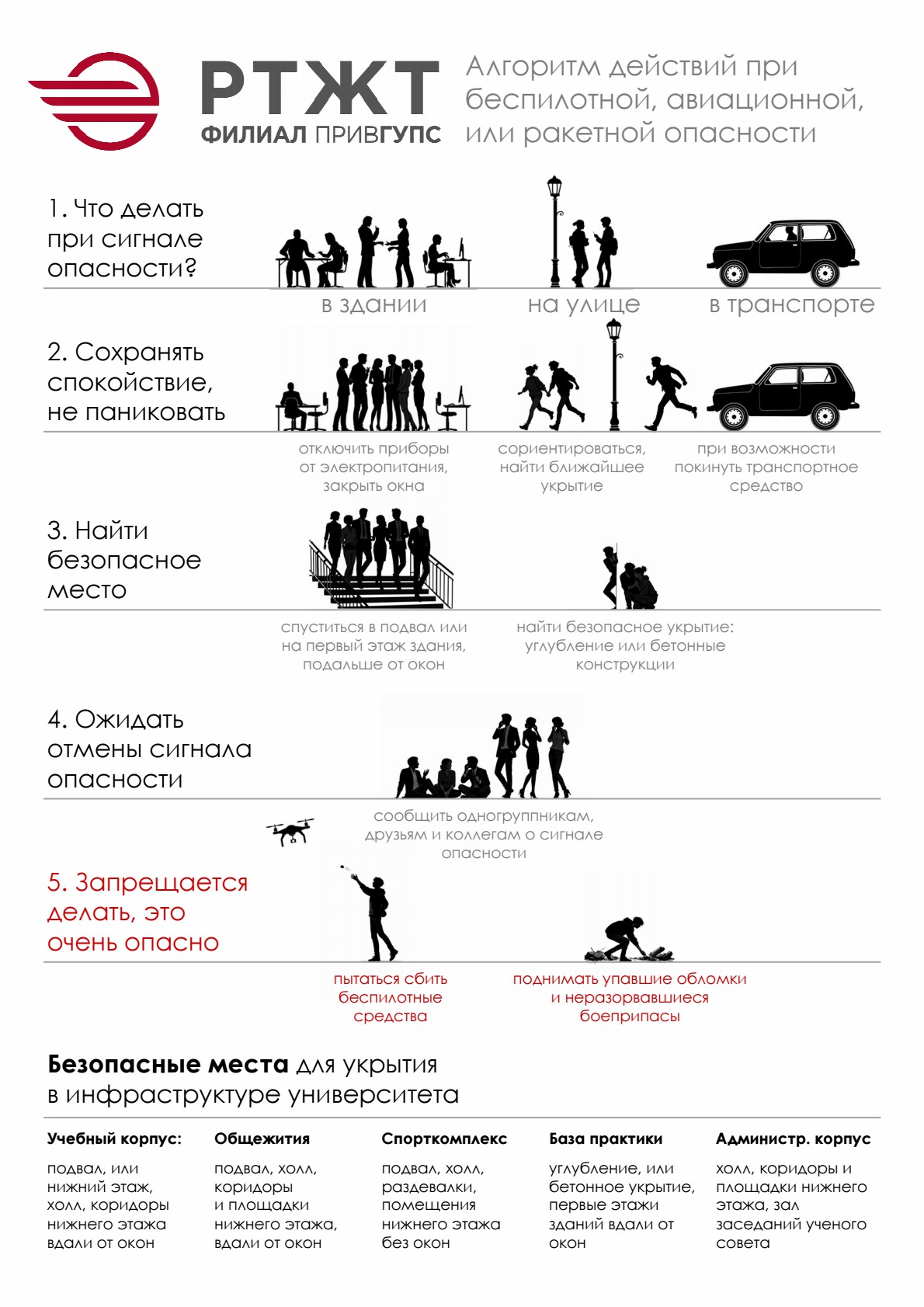 Юго-Восточная железная дорога напоминает: нельзя переходить пути в не предназначенных для этой цели местах и перебегать их перед движущимся поездом, прыгать с платформ и подниматься на крыши вагонов, ходить в зоне движения поездов в наушниках и капюшоне. Необходимо пользоваться специально оборудованными пешеходными переходами, тоннелями и мостами. Во избежание поражения электротоком не приближайтесь к высоковольтным линиям, не прикасайтесь к электрооборудованию, не поднимайтесь на крыши сооружений, расположенных под проводами и на конструкции железнодорожных мостов.
